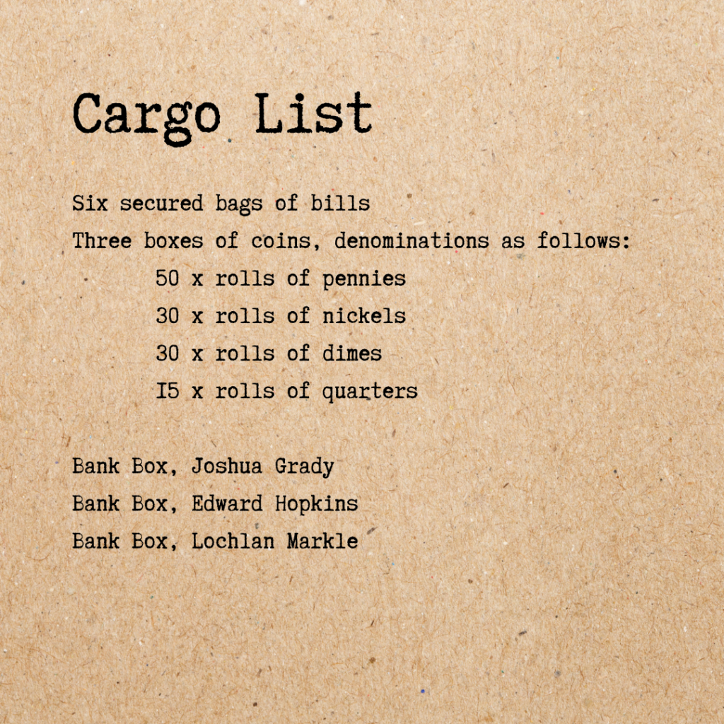 “Well of course the routes and times of armoured carriage transfers aren’t public knowledge!” The manager of the bank was a short, thin man with a gaunt face and thinning hair.